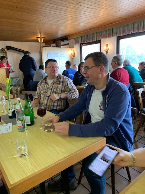 Nachdem auch noch weitere Mitglieder dazugestoßen waren, konnten ingesamt 18 MFB‘ler und Familienangehörige das gute Besenessen und natürlich den Wein genießen.