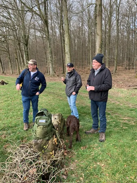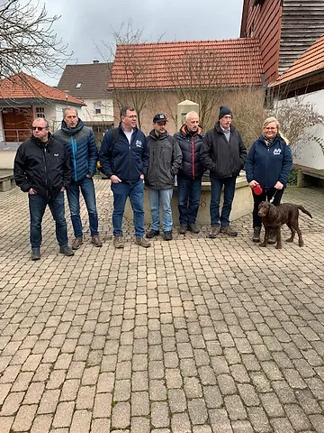 Nach dem obligatorischen Gruppenfoto starteten 8 Wanderer Richtung Industriegebiet Gölshausen und erreichten, mit einem Glühweinstopp und einem Likörstopp, um 12:35 Uhr den Waldenserbesen in Großvillars. Aufgrund der vergangenen Sturm-u. Regenwoche waren die Wadwege eine kleine Herausforderung, die zu Kletter- u. Rutscheinlagen einlud.