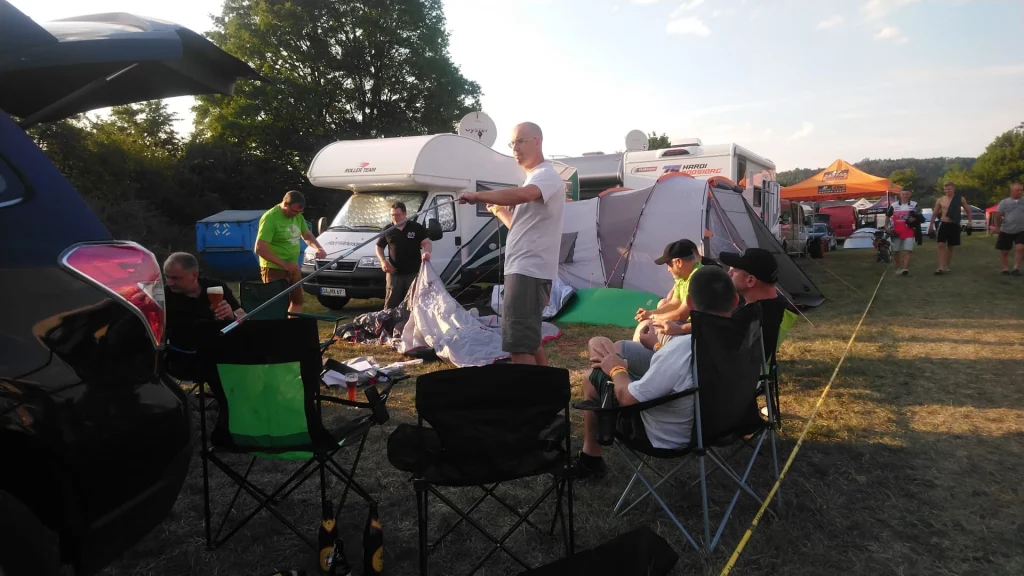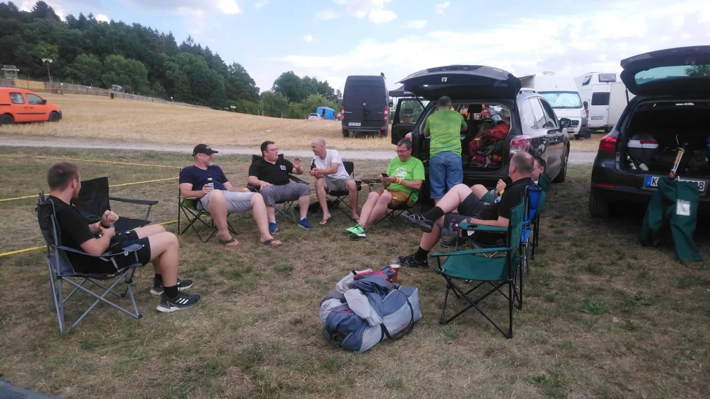 Die MFB’ler reisten am Samstagnachmittag mit dem PKw an, um nach dem Zeltaufbau und einem Begrüßungsbier auf der (diesmal ebenen) Zeltwiese und anschließender Streckenbesichtigung ins Festzelt einzurücken. Nach dem stimmungsvollen Partyabend gings am frühen Sonntagmorgen zum Frühstück und danach zum Einsatz als Streckenposten. Sonntagabend, nach Abschluß aller Rennen gings wieder nach Hause.