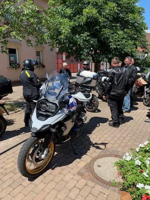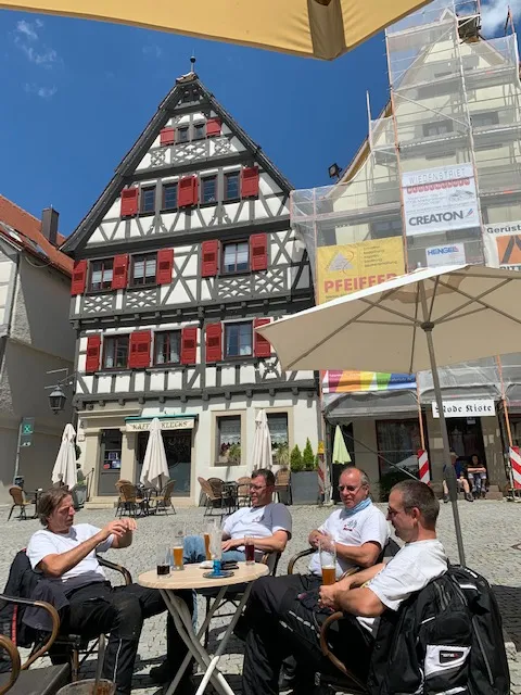 Bei schönem Motorradwetter legten wir, 9 Motorradfreunde, 140 km zurück. Michael führte uns durch den Kraichgau nach Markgröningen. Auf dem historischen Markplatz legten wir an einem Eiscafe eine Pause ein.