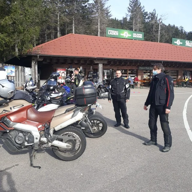 Sechs Motorrad-Freunde starteten um 10:30 Uhr am Dorfplatz zur Herbstausfahrt in den Nordschwarzwald. Bei noch einstelligen Temperaturen gings über Baden-Baden an den Mummelsee. Dort wurde eine Kaffeepause eingelegt und der obligatorische Speckbrotkauf erledigt. Anschließend führte der Tourguide Michael die Gruppe über die Schwarzenbachtalsperre in Forbach und die Rote Lache zurück an den Ausgangspunkt. In ca. 5 Stunden wurden 205 km coronaconform zurückgelegt.
