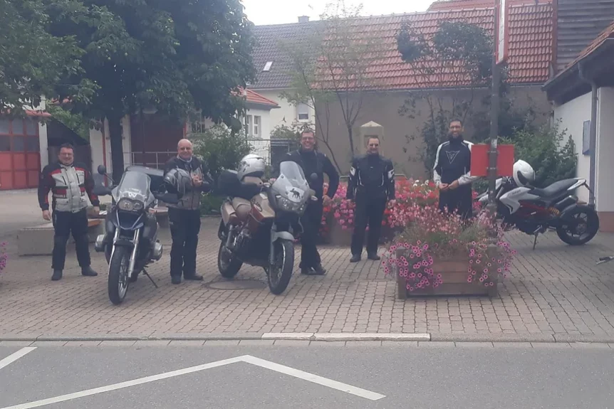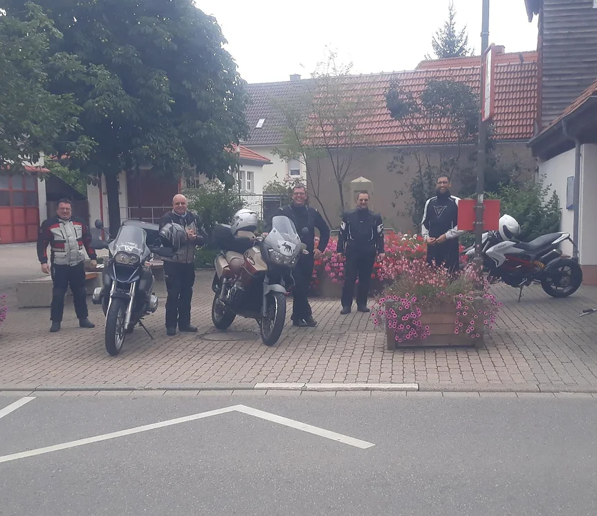 Zur Augustausfahrt starteten 5 Biker um 10:00 Uhr zur Abfahrt am Dorfplatz. Die Tour führte auf ingesamt 150 Kilometern ins Heckengäu und zurück an den Ausgangspunkt.